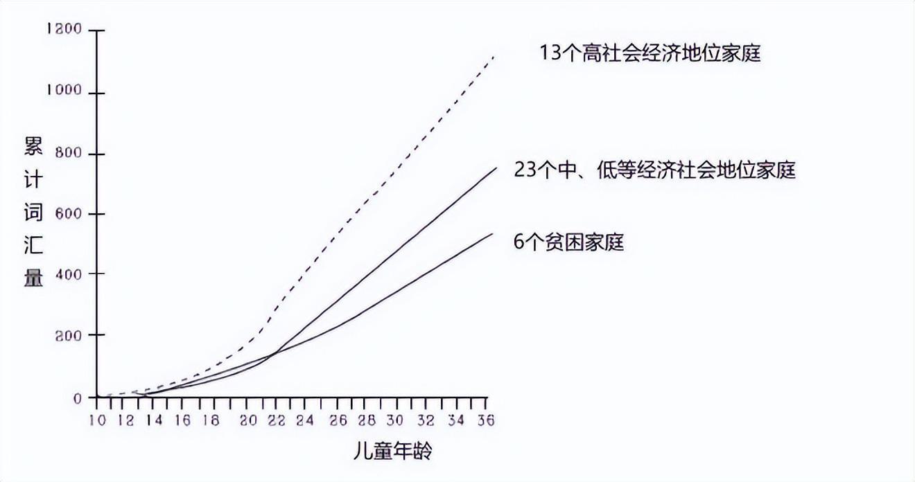 在研究时发现,出生贫寒的孩子到4岁时,跟富裕家庭的孩子相比,少听到3000万个单词。等到孩子们10岁左右,又进行了一次回访,结果发现,那些词汇量大的孩子,普遍学习成绩要超过词汇量低的孩子。