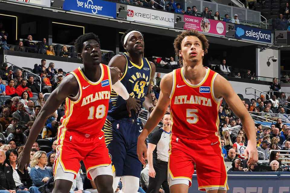 老鹰上一场主场86-104输给火箭,步行者上一场主场113-110险胜公牛,本赛季前两次交锋老鹰均战胜步行者。本场老鹰缺少克雷伊奇、奥孔古、波尔津吉斯,步行者缺少托平与哈利伯顿。首节双方早早开启对攻模式,双方持续紧咬比分缠斗至老鹰16-15领先,老鹰连得4分取得领先。老鹰之后继续维持27-22领先,步行者反扑追到差1分,老鹰多点开花扩大39-33领先,麦康纳中投得分,首节结束老鹰39-35领先步行者。首节老鹰28中15,其中三分4中2,杰伦10+2+3;步行者22中13,其中三分11中5,内姆哈德8中5命中3记三分得到15分。